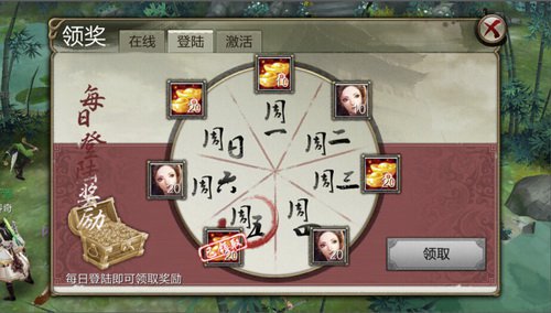 【登錄領獎】每天登陸遊戲都有獎賞領取,所以把每天活躍度都完成到140,其中周一周三周五周日別離可以領取10,20,20,,20的元寶。