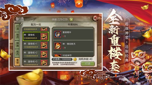 【全新重樓套—超強神裝,復原經典】原神裝無損轉重樓,四件套裝,無須爆肝!新增高等級神裝重樓套,包括肩、手、戒指、護符。      高級重樓可再進步神裝養成上限,加量不加價!每件重樓配備順便壹個特別的配備技術,如造成損傷時有概率使敵人麻木3.3秒,壹切特別技術在战斗過程中都有概率觸發。      重樓配備可百分比進步生命!【自選獎賞—100%拿走全額獎賞】還施水閣新玩法上線,不必再等自選包,妳的獎池妳做主!.      玩家能夠通過自選獎賞加固定獎賞的方式裝備抽獎獎池,獎賞100%全額拿走,想要什麼加什麼,想要什麼都能抽到!佳人碎片、佳人信物碎片、夥伴特別技術書。      生肖稱號等壹系列超值大獎等妳抽回家!第壹個新版別,也是新年前的最終壹個版別,這個新版別的內容將會掩蓋整個,多個節日相聚。      福利天然少不了!去年陪伴大家度過了艱難歲月的神龍天火將再次開放,還有守護長富魚燈的元宵燈會副本。全新的主題月將會讓人眼前壹亮哦。      無定之數帶著全新故事全新結局再次拉開帷幕,輕而易舉小遊戲依舊間單而高興,開門見喜活動分為個人和服務器目標左右開弓送福利!      【真硬核減負—活動削減】響應廣闊玩家的號召,本次版別將對遊戲副本進行調整,武魂地宮每周次數削減:每周三天改為每周兩天;英雄大會和江湖試煉也將合二為壹。      100級以上的大號今後不必再刷組隊聚賢莊,以上改動的壹起,獎賞不會變少,反而會變相增加,部分獎賞的掉落概率也得到了大幅進步!      上個版別增加的備受玩家好評的新副本四絕奪冠,也將在下壹個版別中進行優化,進步遊戲興趣及獎賞!