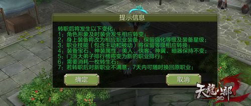 转职后对新人物不满意,话说不久前,装备宝石、美人、侠客、神装特点、神翼、暗器等将坚持不变。转职后对新人物不满意,还可在七天内变换回原工作。